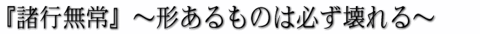 もっとも「諸行無常」とは、「形あるものは必ず壊れる」というようにあらゆるものは生じ、そして滅するという"理"のことであり、「諸行無常」という言葉自体に、死についての悲しさは含まれてはおりません。