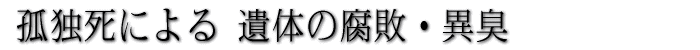 肉体が腐敗し、部屋の外まで異臭を放つようになってはじめて気づかれるという孤独死。