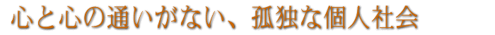 なぜ、このような、心と心の通い合いがない、孤独な個人社会になってしまったのでしょうか。