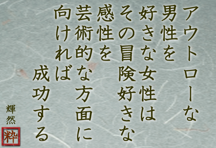 「良くない誘惑にのってしまうクセを悪いものとして直そうとするのではなく、それを長所ととらえ、あなたの大胆不敵な手腕で、世の中に新しいビジョンを造り出せ」