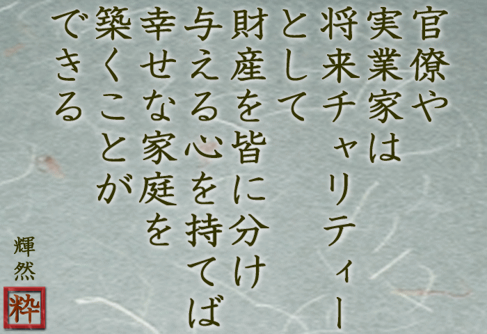 | そのような、権力を得たり財産を得たりした人は、周りから妬まれがちだ。 |