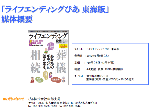 ライフエンディングぴあ東海版 出版